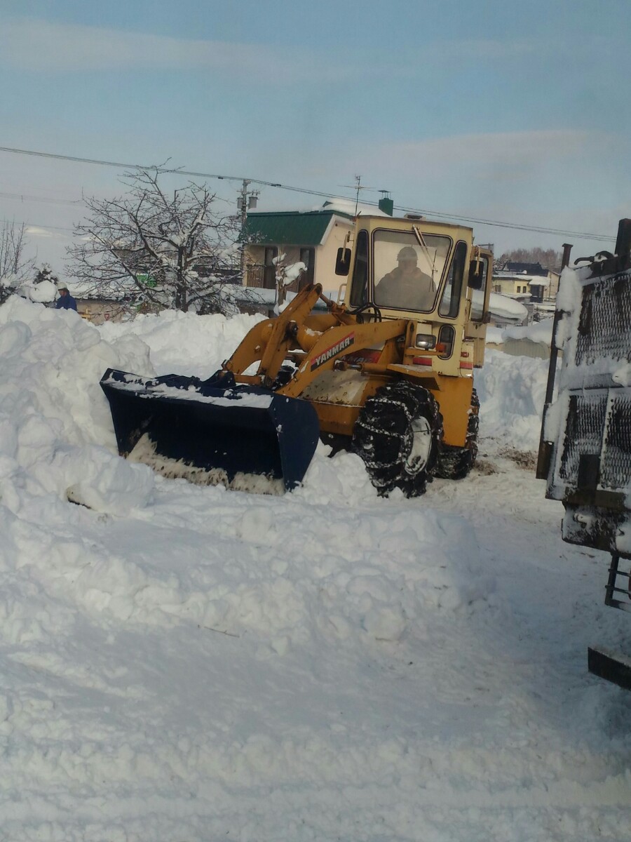 ホイルローダーとダンプ車を駆使し、場内の雪を排雪しました。