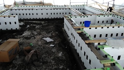 こちらは、かんたんベースと言う断熱型枠の施工が