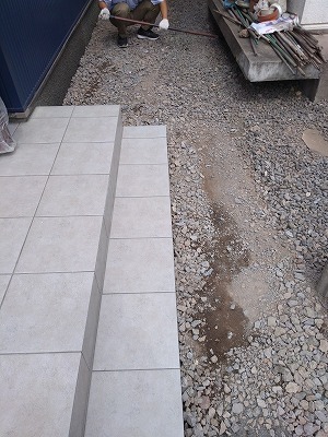 こちらでは、化粧砂利が入る予定なので、職人さんがその前に砂利をならしています。