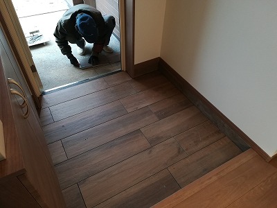 いつもの標準仕様のタイルとは違い木目調のタイルになります(^o^)