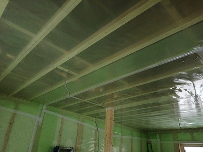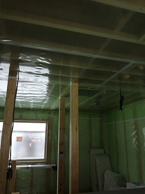 2階の天井下地取付が行われた後に、天井気密シート張りが行われました(^^)