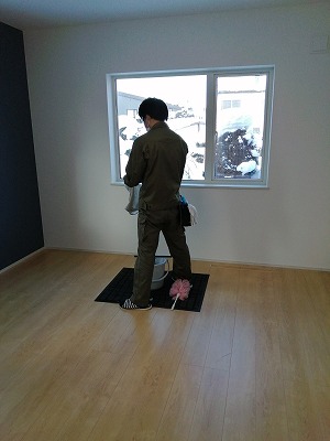 またこちらでは、脚立を使って届きにくい場所も、窓もピカピカに仕上げています!