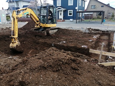 本日は土地の堀削を行い、明日からは砂利入れが行われ、