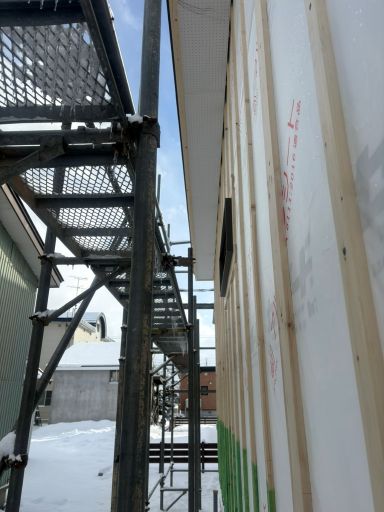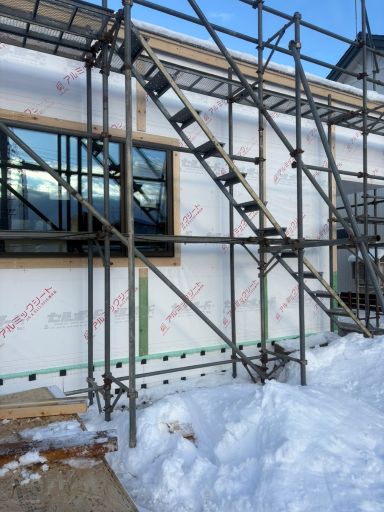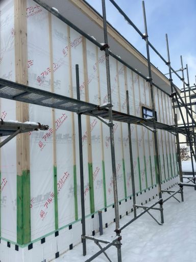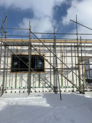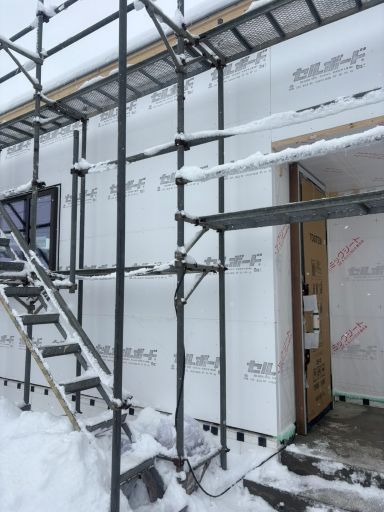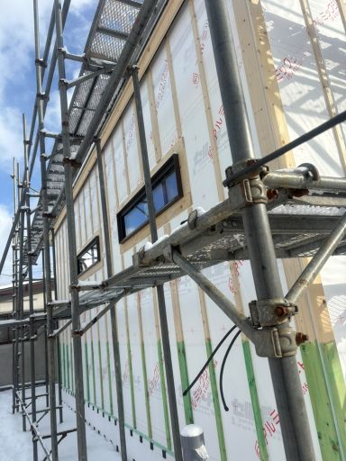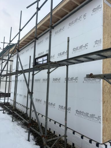 また透湿防水シート張りが完了しましたら、外壁下地材の取付が行われました。