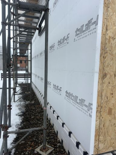 その断熱材(セルボード)を外壁全体に取付していきます。
