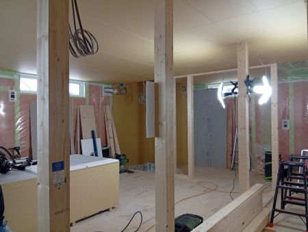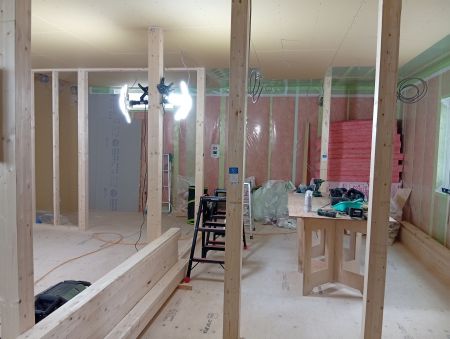 天井を張り終わりましたら、壁のボード張りへと進んでいきます。