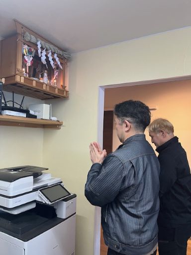 家長である社長筆頭に神棚にお参りをしました。