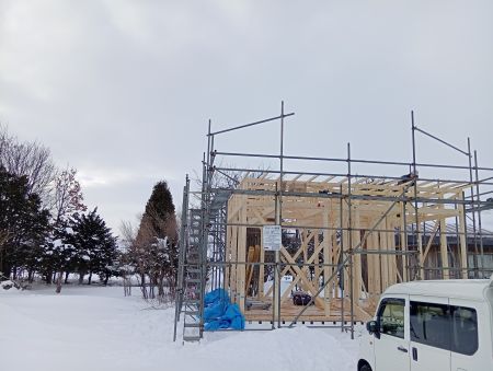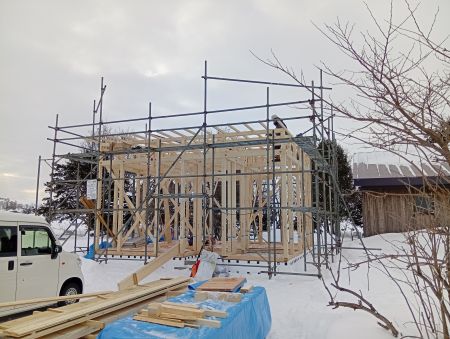 クレーンが入り、弊社大工と応援の大工さんも入ってくださって組み上げが進んでいきました。