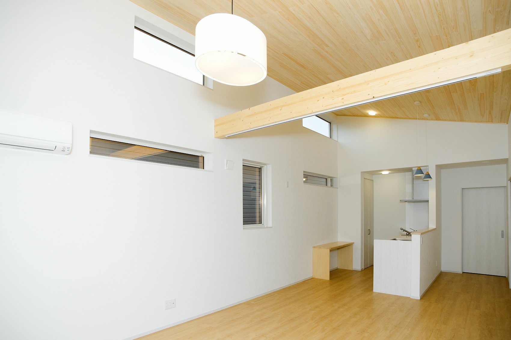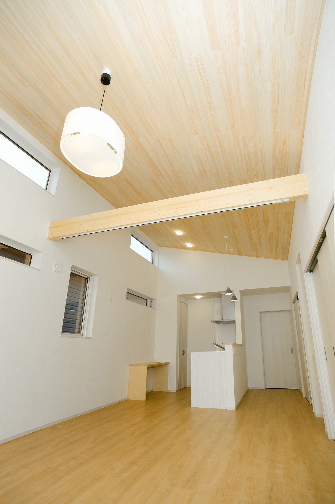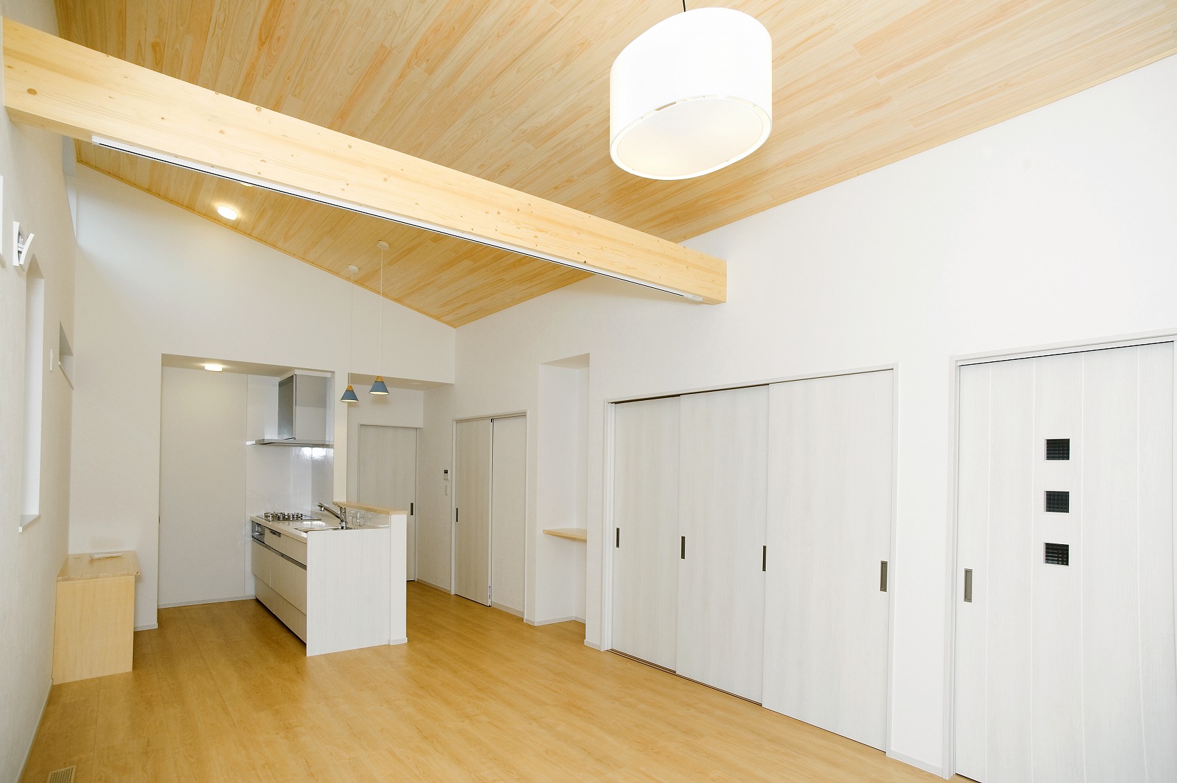 中は勾配天井で広い家