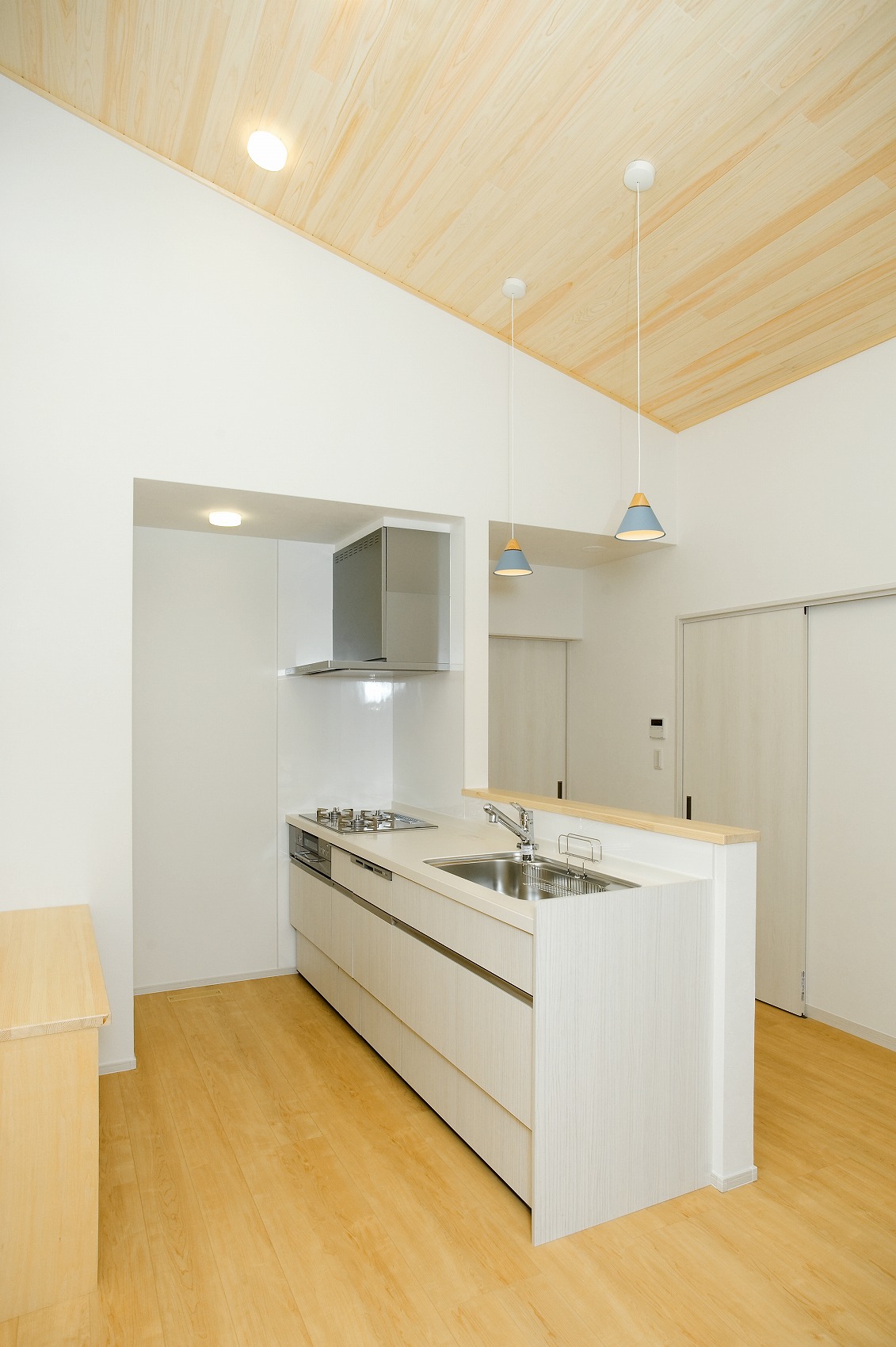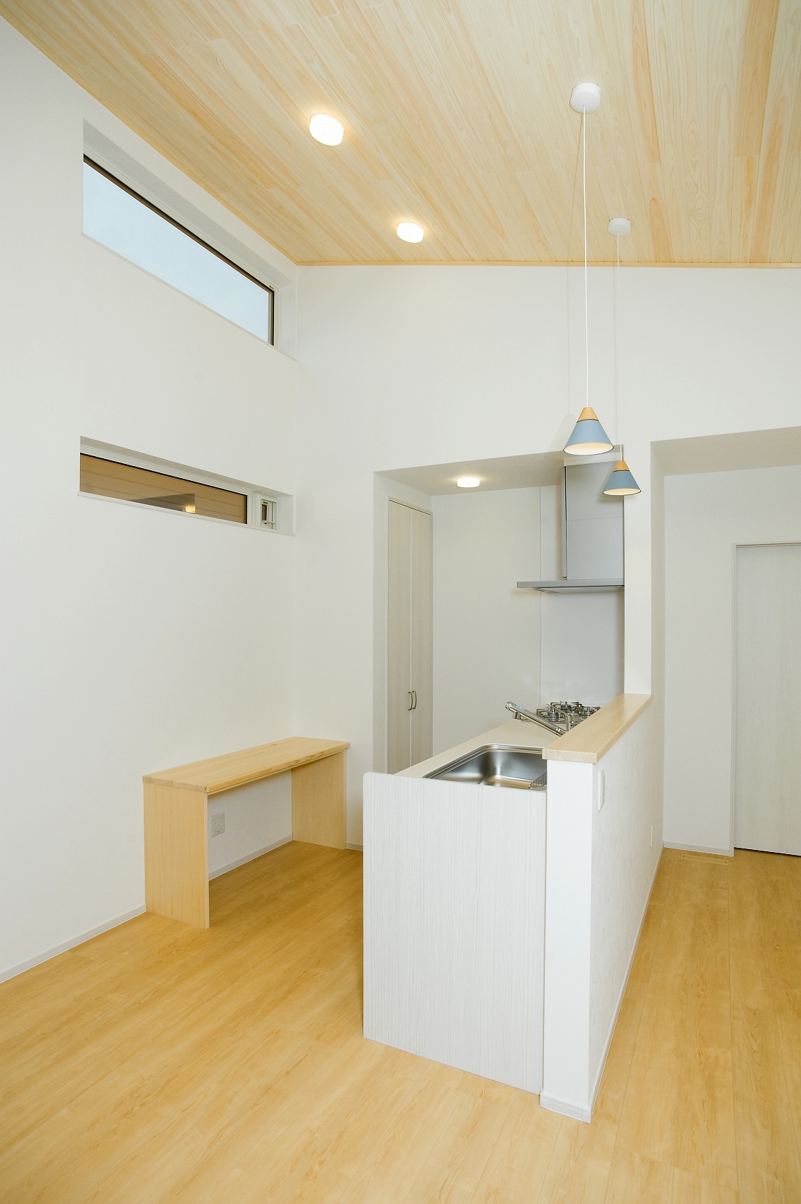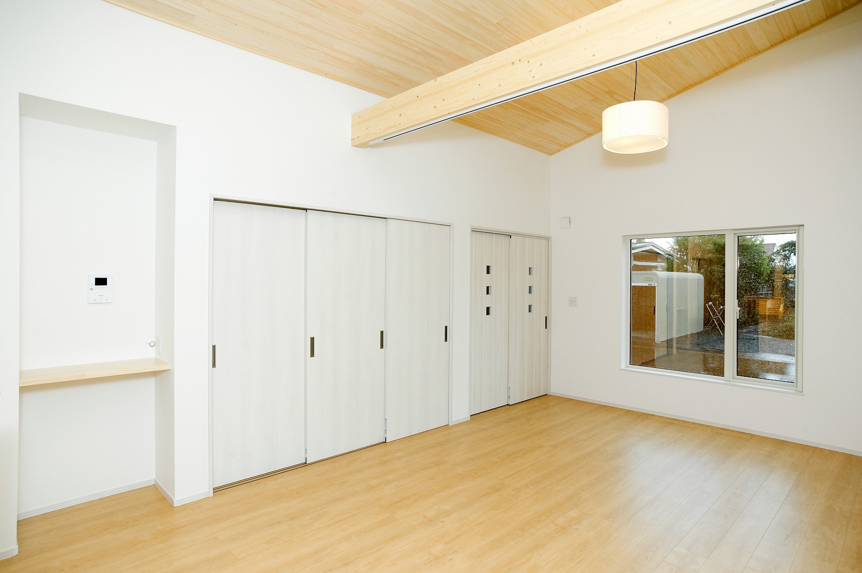 中は勾配天井で広い家