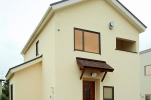 本の伝統的な切妻屋根と明るい土色の塗り壁で、ちょっと懐かしい外観のお家です。一見、古風でオーソドックスなお家ですが、至る所に施主様のこだわりが活かされています。シューズクロークや広いウォークイン・クローゼットなど収納も充実しています。